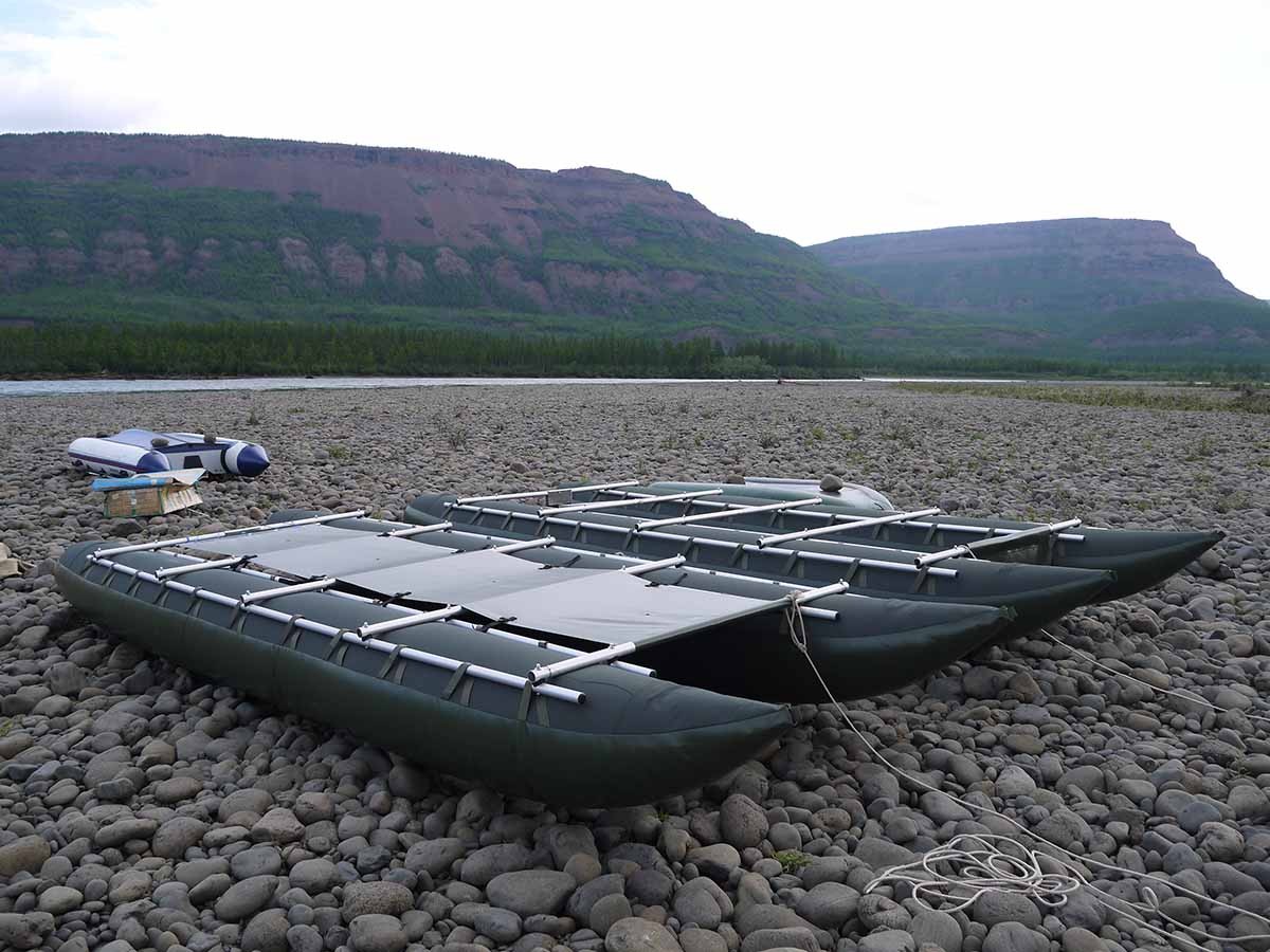 Также у нас есть два больших 6-местных катамарана "Таймыр 600". Если плыть без вещей, то возможно и 8 человек на такой катамаран посадить.